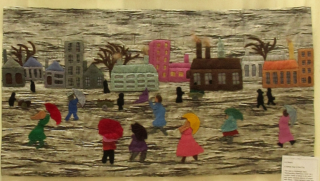 One of the challenges given to Flowerpatch Quilters members before lockdown, when we anticipated having our yearly exhibition in 2020, was to sew a 5" x 5" square with the title of either "In the Tree" or "Under the Tree". The only stipulations were that the "Ins" should have a blue background and the "Unders" should have a beige or brown background and they should not have a binding on the edge. The resulting squares were displayed at our recent exhibition.